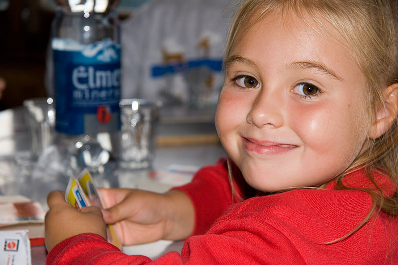 Essen und Spielen in der Hütte